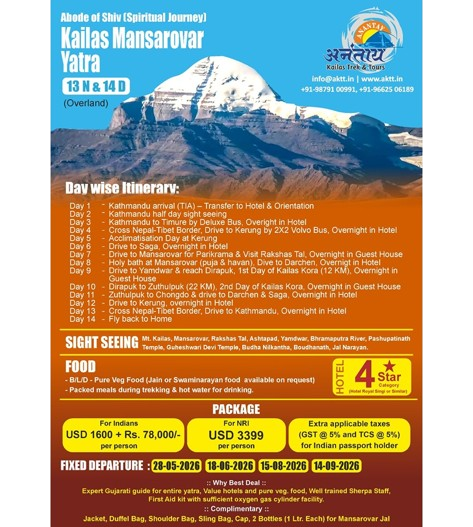 The tour operator, Anantay Kailas Trek & Tours, handled the sacred Kailas Mansarovar Yatra with great professionalism and responsibility. Despite the challenging terrain and weather conditions, every arrangement—from permits and transportation to accommodation, meals, and on-ground guidance—was managed smoothly. The staff members were extremely supportive, caring, and always available to assist pilgrims at every step of the journey. Their deep experience and thoughtful planning ensured safety, comfort, and peace of mind throughout the yatra. Overall, the journey was not only well organized but also spiritually enriching, memorable, and truly fulfilling for all participants.